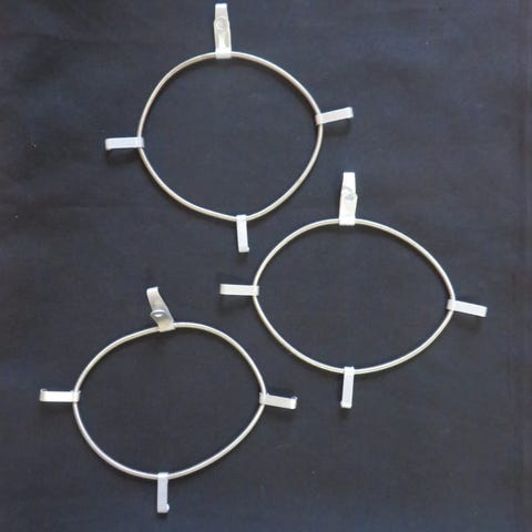 Käytettyjä, mutta hyväkuntoisia jousiripustimia 4 kpl. Olleet Heljä Liukko-Sundströmin seinälaatoissa, mutta sopivat muihinkin samankokoisiin seinälautasiin.