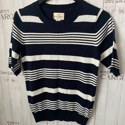 Lyhythihainen ohut neulepusero. Kerran ehkä ollut päällä