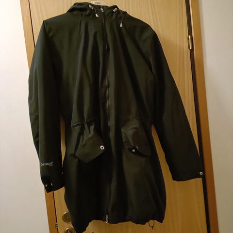 Tuulen pitävä, ohuella toppavuorilla. Puolipitkä. Huppu.