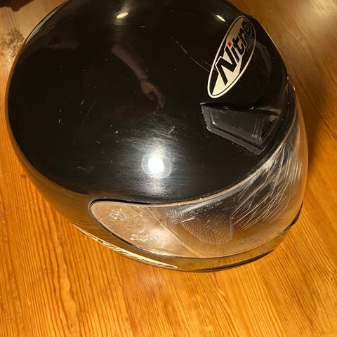 Nitro X512-V moottoripyöräkypärä punaisella värillä. Kypärä on suunniteltu tarjoamaan suojaa moottoripyöräilijöille ja siinä on ilmanvaihtoaukot. Malli on X512-V ja se on valmistettu kestävistä materiaaleista.