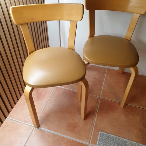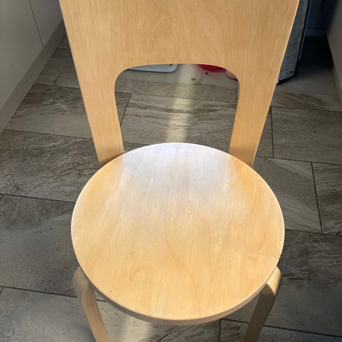 Myydään hyväkuntoinen Artek 65 tuoli. Pientä kulumaa takajaloissa. Istumakorkeus n. 44 cm