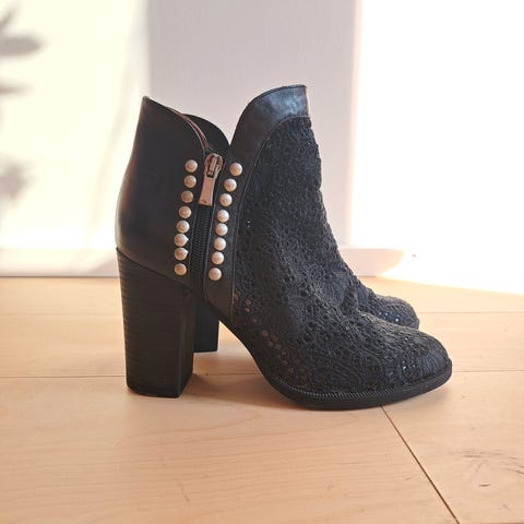 Näyttävät ja tukevat juhlakengät! Koko 36, mutta peeptoen ansiosta enemmänkin kokoa 37, mikä on oma kengännumeroni. Polvivamman takia minulle kuitenkin valitettavasti liian korkeat.