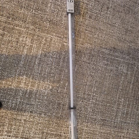 Ikean musta ja valkoinen verhotanko. Teleskooppi. Lisäksi 22 kpl valkoisia verhorenkaita. Jotain kiinnikkeitäkin löytynee, mutta Ikeastahan saa.