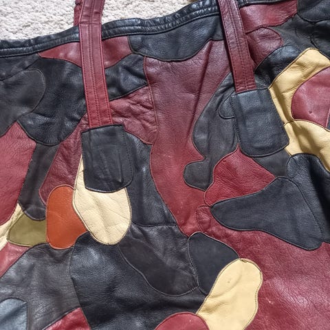 Retro nahasta tehty kassi josta saa kätevästi joko pienemmän tai enemmän mahtuvan kassin, todella monikäyttöinen ,myös sivuilla vetoketjulliset taskut, lyhyemmät kantosangat ja olkarammi, todellinen tilaihme, lev, n. 33cm , kork. n 20cm, ja avattuna 28,5 cm ilman sankoja mitattuna