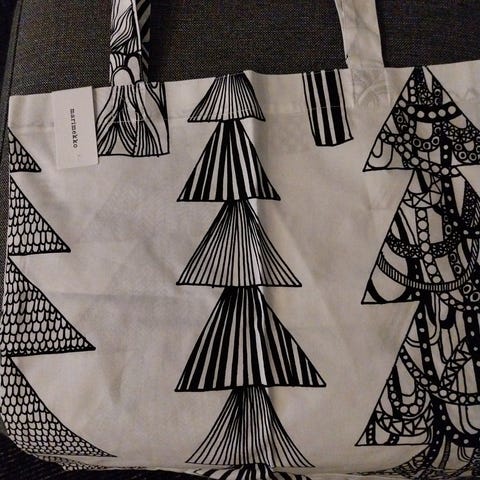 Uusi kassi puuvillaa. Kankaan nimi Kuusikossa. Virheetön.