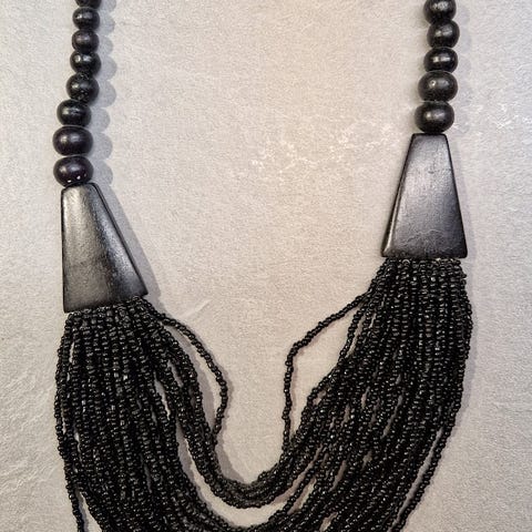 Kaunis koivunlehti-aiheinen messingin värinen kaulakoru. Käytetty pari kertaa joulujuhlissa 2010-luvulla, kunto kuin uusi.