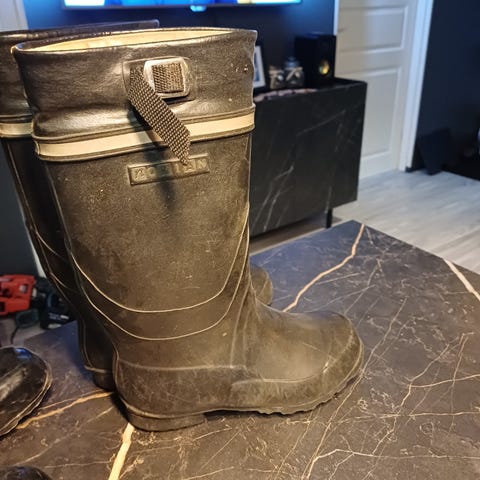 Vähälle käytölle jääneet kumisaappaat. Voin lähettää