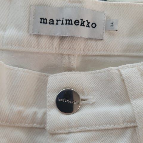 Marimekko Kaulaus -farkkutakki/paita. Koko L. Vähän käytetty. Kai-kai 53cm, olka-helma lyhimmillään 63cm.