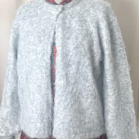 Erittäin hyväkuntoinen mohair merino -villasekoite neule lohenpunaisena. Ei nukkaa. Koonsa puolesta menee 36-40 kokoa käyttävälle. Lapussa lukee xs, mutta itse käytän kokoa m.