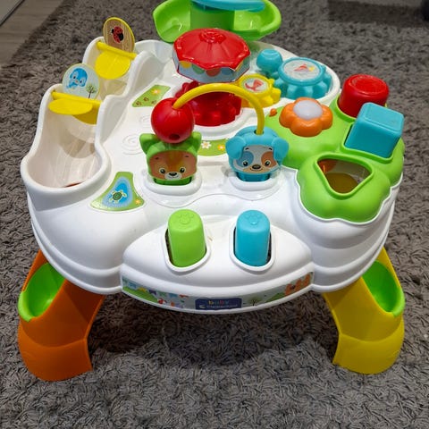 Little Smobyn aktiviteettipöytä. Hyvässä kunnossa, mutta yksi palikka puuttuu.