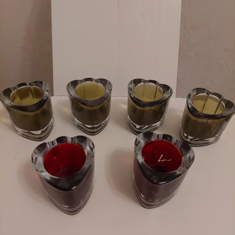 Kuutio (6,7x6,7x6,7cm), pyöreä (kork.7cm, halk.6,5cm). H.10e/yhteensä.
