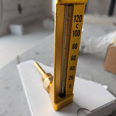 Myydään tanskalainen teollisuuslämpömittari. Ehkä Tempress merkkinen nykyään. Alareunassa teksti AABYHØJ DANMARK.