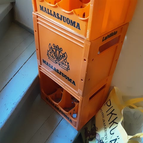 Tuohikontti, laukku, töppöset, kori yhdessä uuteen kotiin