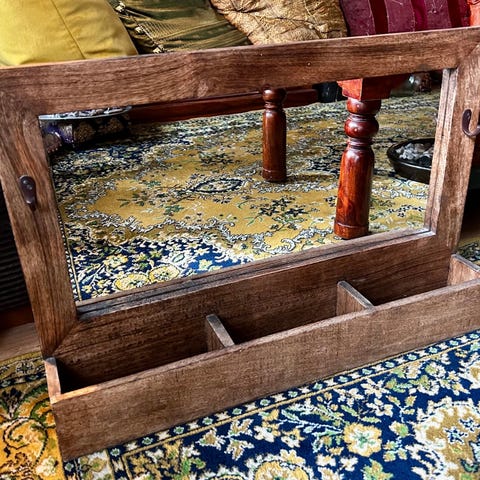 Todella hyväkuntoinen acazia peili etsii uutta kotia.