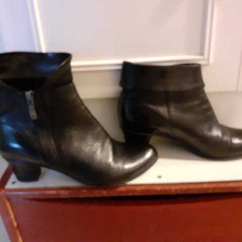 Vähässä käytössä olleet nahkaiset, karvavuoriset talvikengät.Varret käännettävissä.