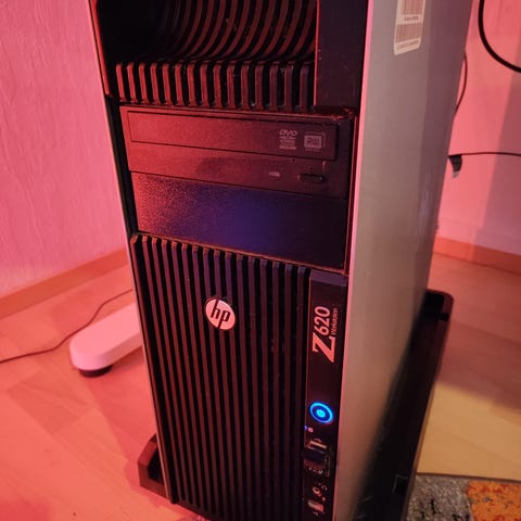 Tehokas HP Z420 työasema unten Xeon 3.7Ghz prosessorilla jossa 4 ydintä ja 8 säiettä ja 22" HP näyttö säädettävällä jalustalla. Näytön voi kääntää pystyasentoon.