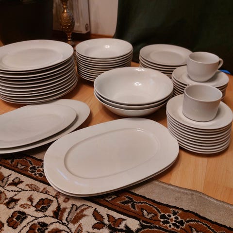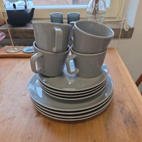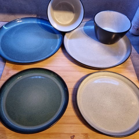 Lautasissa on hieman naarmuja näkyvissä, mutta muutoin ovat hyvässä kunnossa.