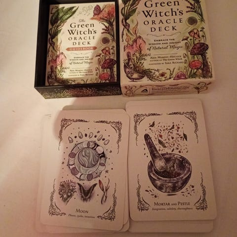 Muutaman kerran käytetyt oraakkelikortit + opaskirja.