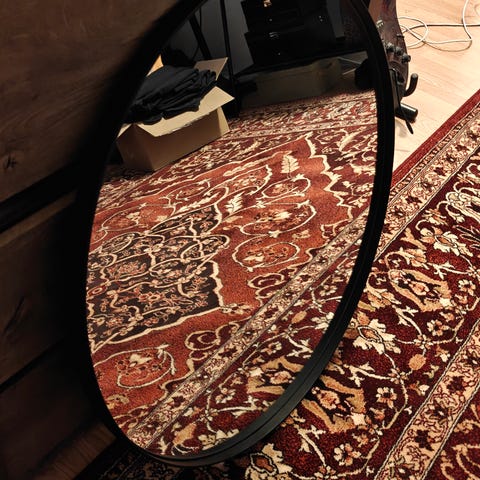 Kehys mattaharjattua terästä. Peilin voi kiinnittää joko pysty- tai vaakasuunnassa. Painava.