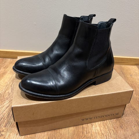 Ruskeat Ten Points nilkkurit nahkaa. Irrotettavat pohjalliset, pituusmitta kuvassa. Hyvät jalassa, sisällä ohut vuori. Erittäin hyväkuntoiset, vain muutama pieni jälki havaittavissa.