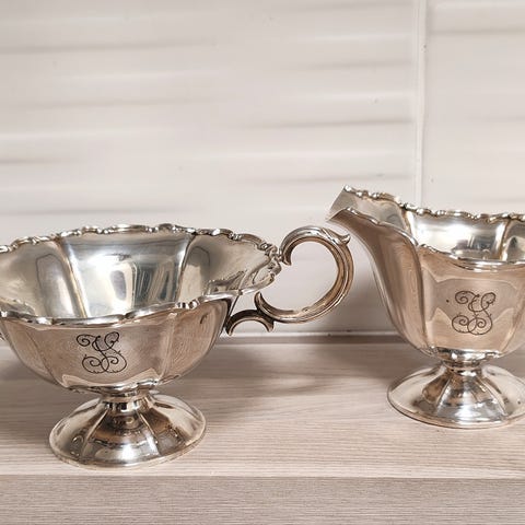 Kuin uudet, vaikka ikää on. Kaiverrettu 16.2.64. Koukeroiset nimikirjaimet , ilmeisesti A.T 60v. Sisällä kultaus, ei käytön jälkiä. Alpakan leimat. Todella kaunis setti, ajattoman tyylikäs. Alkuperäinen pakkaus. Nouto Tesomalta sovitusti tai postitus mieluiten ToriDiilillä.