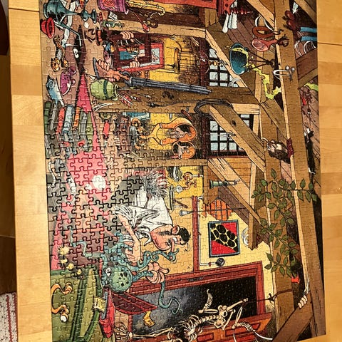 Hyväkuntoinen, kaikki palat tallessa ja kerran koottu Jan van Haasteren palapeli 1000 palaa.