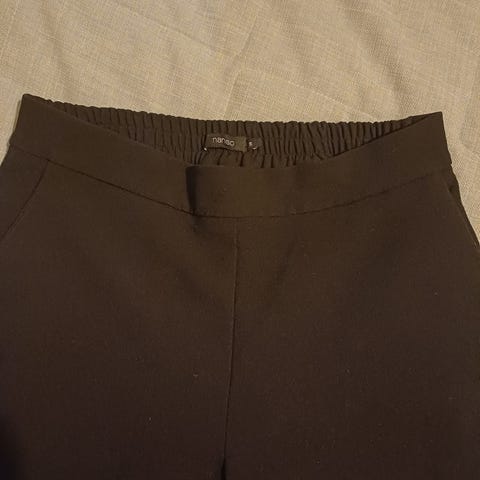 Kerran pidetyt housut, käyttämätön kauluspaita. Kaunis setti, laskeutuvaa viskoosisekoitetta. Housuissa takana joustovyötärö, sivuissa taskut.