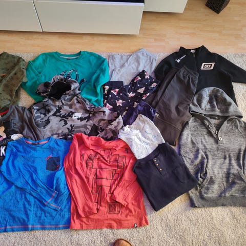 - Sekalainen määrä housuja, paitoja, t-paitoja