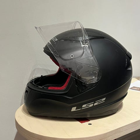 Kokoa S, sisällä irrotettavat pehmusteet poskille ja niskalle. Hieman naarmuttunut pinta, sekä tarra liimaa jonka saa kyllä puhdistettua.