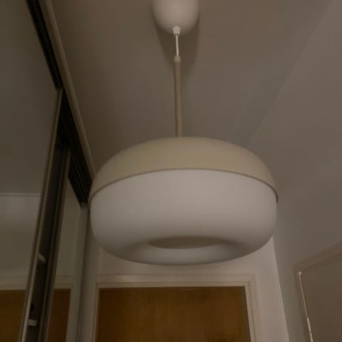Myydään todennäköisesti IKEAn kattovalaisin, veneen mallinen. Beige/kerman värinen. Metalliset yksityiskohdat.