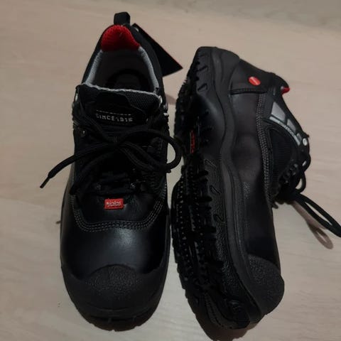 Metallittomat talvivuoratut turvakengät, joissa on komposiittiturvakärki ja pehmeä pistosuojattu pohja. Poron XRD:n sisäpohja, kaksinkertaiset pehmusteet, nauhakiinnitys, hyvinkuvioitu pitävä pohja.
