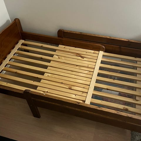 Jatkettava sänky lapselle. Sänkyyn mahtuu patja 110-200 cm x 75 cm