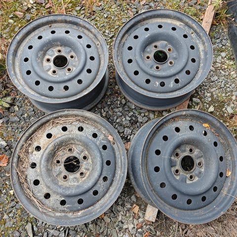 Hyväkuntoiset vanteet, yhdestä vanteesta puuttuu keskikuppi.