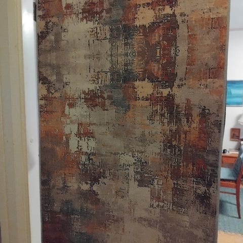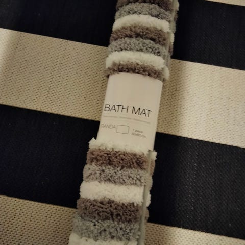 Vuoden verran käytetty liukuestehuopa. Ei ollutkaan tarpeellinen maton alle, johon ostettiin. En avaa kangasta mittausta varten, mutta on vähintään tuon 2m x 2m. Pystyy helposti leikkaamaan, jos liian suuri. Erittäin tarrautuva sekä lattiaan, että mattoon.