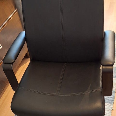 Ikean tummanharmaa Bleckberget - työtuoli liikkuu helposti ja kevyesti pyörillään ja sen korkeussäätö toimii.