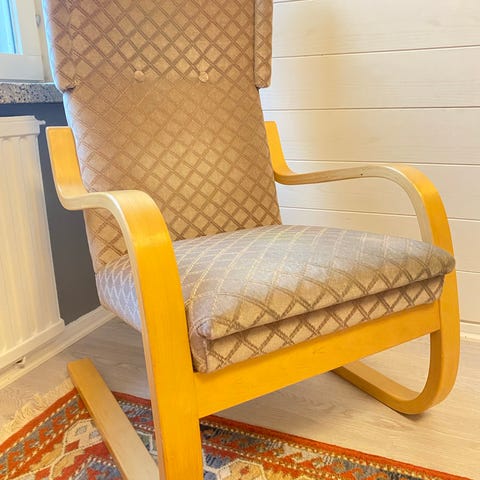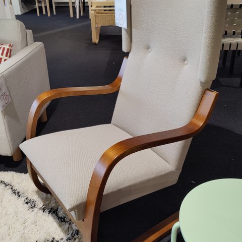 Artekin 444 nojatuoli jossa hyväkuntoinen zebra verhoilu .tuolin puuosista löytyy käyttö jälkiä ja kolhuja mutta muuten heti käyttöön hyvä kokonaisuus .lisää Artek ym.tuotteita www.antiikkiajaton.fi h.tuolille 1200e