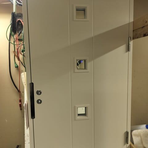 Ovessa älylukko ollut joten siitä yksi pieni ruuvin jälki oven ulkopinnassa.