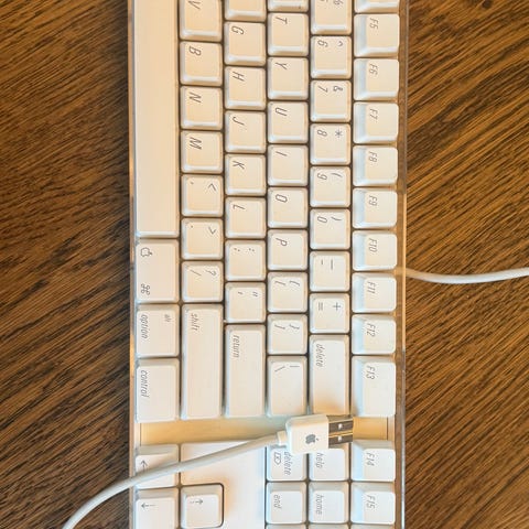 Hyväkuntoinen jonkun vuoden vanha, hyvin toimiva näppäimistö.