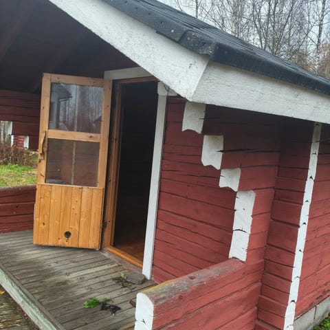 Kahden hengen nukuttava aitta. Väriltään vaaleanharmaa mustalla ovella ja mustalla katolla. Sopii myös lasten leikkimökiksi ja varastotilaksi. Kuin uusi.