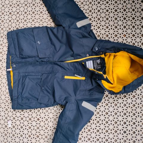 Kuvanmukainen lastentakki, kestää vettä, lumilukko jne. Takissa koko 6, meillä mennyt tytöllä koossa 116-128 cm.