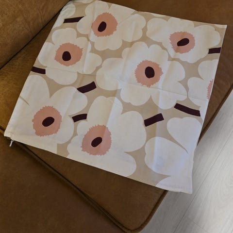 Hyväkuntoinen pesty silitetty Marimekon Unikko juhlavuoden kangaspala sivut ommeltu puuvilla satiinia