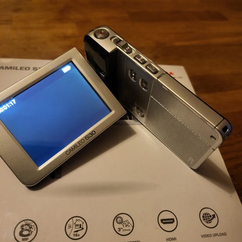 Täysin toimiva ja lähes käyttämätön Toshiba Camileo S30 Full HD -videokamera.