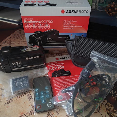 Mukana kaikki alkuperäiset varusteet: SD-kortti, ohjekirja, takuulaput, Magix Video Deluxe MX Plus trial-CD, säilytyspussukka, USB-kaapeli, pieni kolmijalka, näytönpuhdistusliina, virtakaapeli molemmilla pistokkeilla, AV-kaapeli, HDMI–mini HDMI -kaapeli sekä alkuperäinen laatikko (ei pakkausmuoveja).