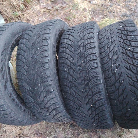 2 kpl Nordman RS2, 185/65 R15 92R XL yksi talvi ajettu, valm. 46/-20. 8 mm kulutusmerkki näkyy. Ja 2 kpl Hakkapeliitta R3, 185/65 R15, kaksi talvea ajettu, valm. 38/-20. 6 mm kulutusmerkki näkyy. Uuden vastaavan sarjan hinta n. 550 e. Ikä- ja kulumisvähennys huomioitu hinnassa. Myydään sarjana.