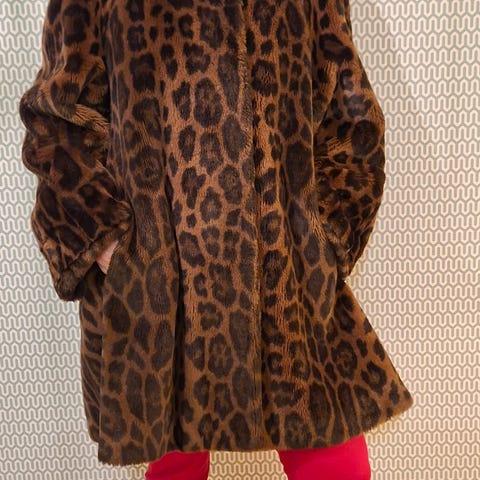 Vähänkäytetty leoparditakki. M-koko. Pituus noin 60 cm. Hartialeveys 40 cm