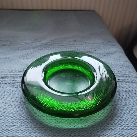 -Nuutajärvi vihreä lasialusta (33cm) 15€ Lasialustassa kullanvärisiä koristehippuja,ihana vaikka jouluksi.