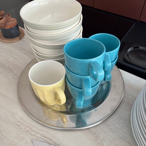 Hiukan elämää nähnyt uniikki kahviastiasto kermakolla etsii uutta kotia.