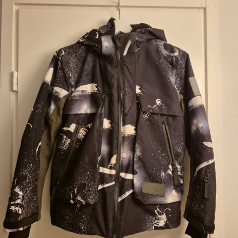 Molo kids toppatakki koossa 146cm. Uutena ostettu ja ollut lapsella vain viikon käytössä laskettelurinteessä. Ei siis ole pesty eikä ole mielestäni pesun tarvetta. Ei juuri häpeä uudelle. Vastaa hyvin kokoaan.ovh 180€