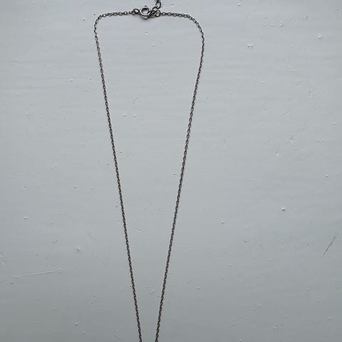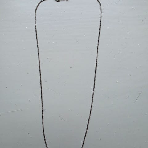 Myytävänä hopeaketju laattariipuksella, jossa pieni kivi. Pituus 50cm, ketjun leveys 2mm. Laatan pituus noin 1,5cm. Kokonaispaino 5,8g.