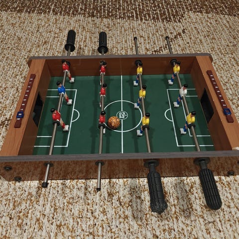 Kaikki nappulat tallella, samoin suomenkielinen peliohje. Peli pienikokoinen, pelilauta 14cm x 11cm.